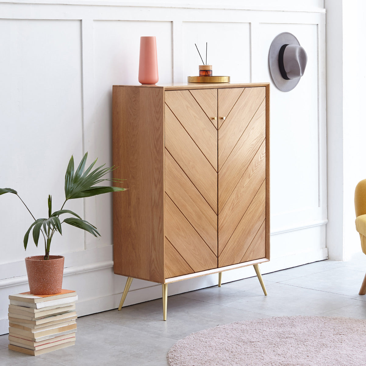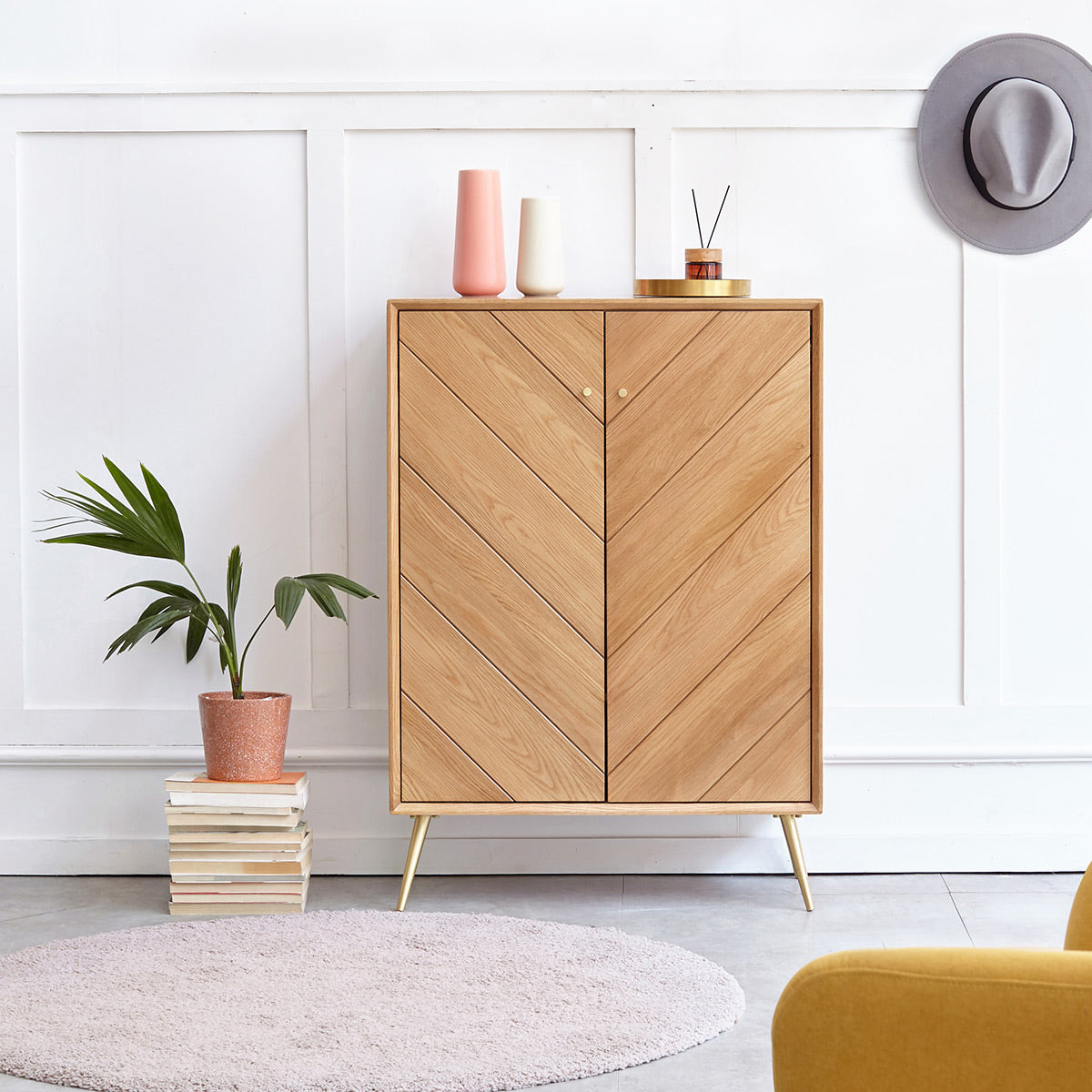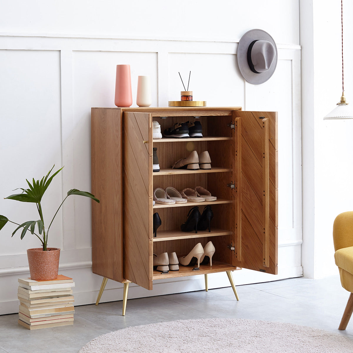 Les panneaux en bois massif épissés en diagonale avec 4 pieds diagonaux en métal rendent le meuble à chaussures Ada à la fois élégant et sophistiqué, un ajout pratique et élégant à n'importe quelle maison.