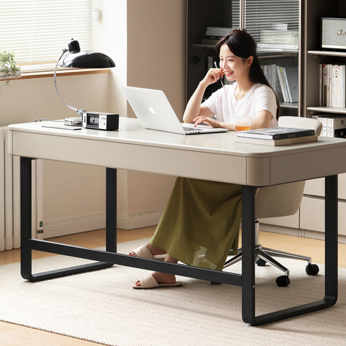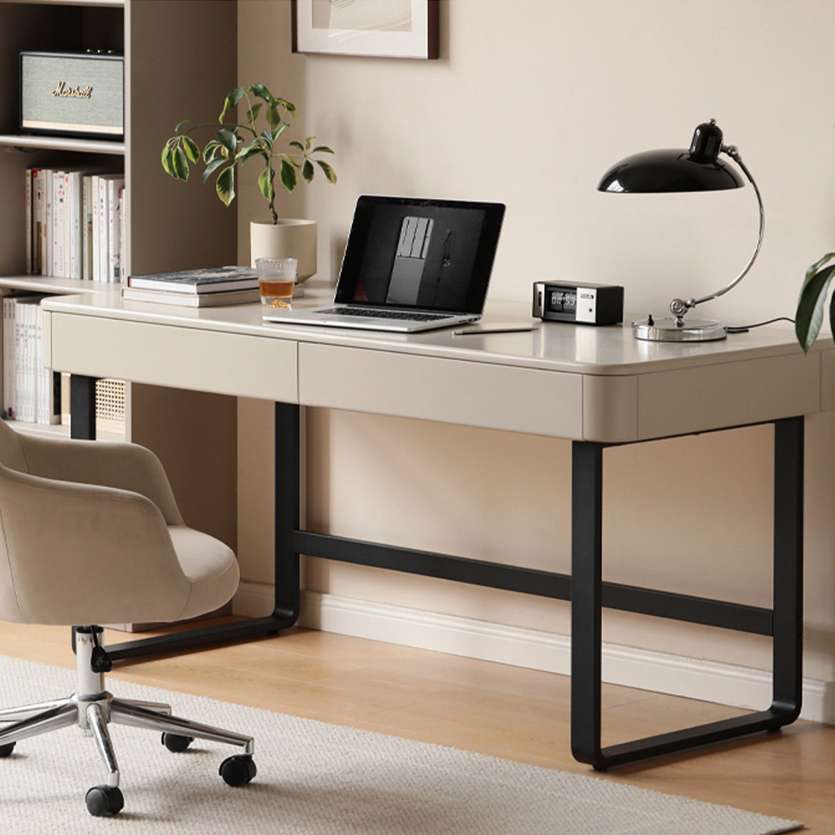 La table d'étude Dante présente un design élégant et moderne avec un plateau large et lisse offrant un vaste espace de travail. Son cadre métallique robuste assure soutien et stabilité, tandis que ses tiroirs intégrés offrent un rangement pratique pour vos essentiels.