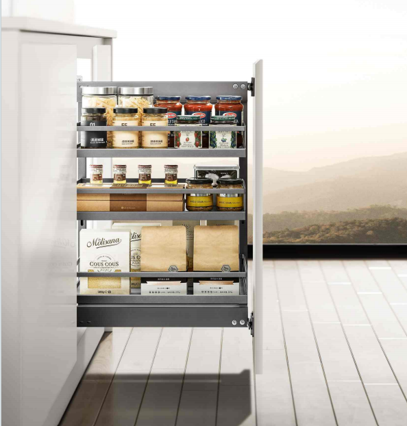 Grâce à sa conception multicouche, ce support optimise intelligemment l'espace des placards d'angle. Des bouteilles de sauce aux paquets de céréales, chaque article a sa place, et son mécanisme coulissant fluide permet de tout voir et d'accéder facilement.