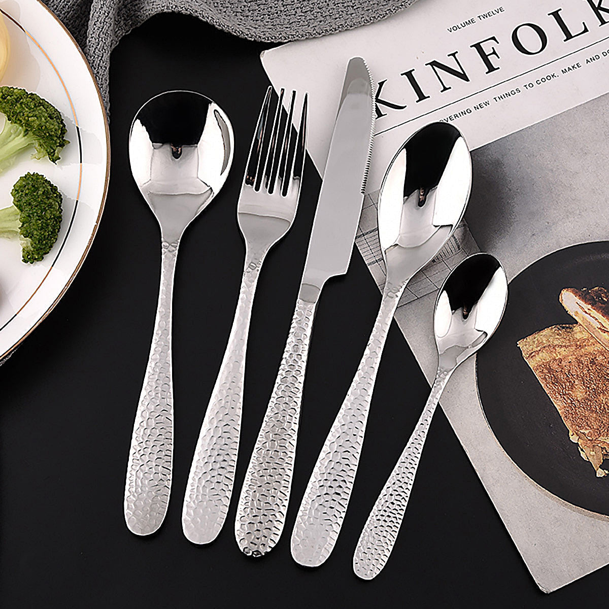 Nos couverts martelés en acier inoxydable apportent une touche d'élégance à votre table. Leur design classique s'harmonise parfaitement avec la plupart des styles de cuisine et de vaisselle.