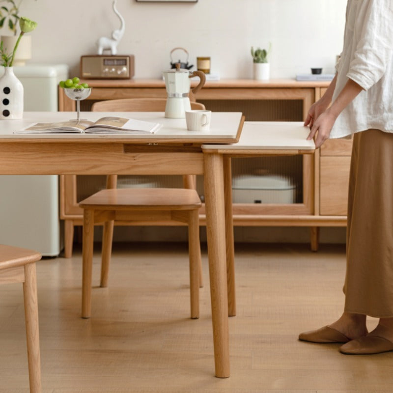 Conception rétractable – Extensible des deux côtés, vous offrant la flexibilité d’organiser facilement des repas intimes ou des rassemblements plus importants.