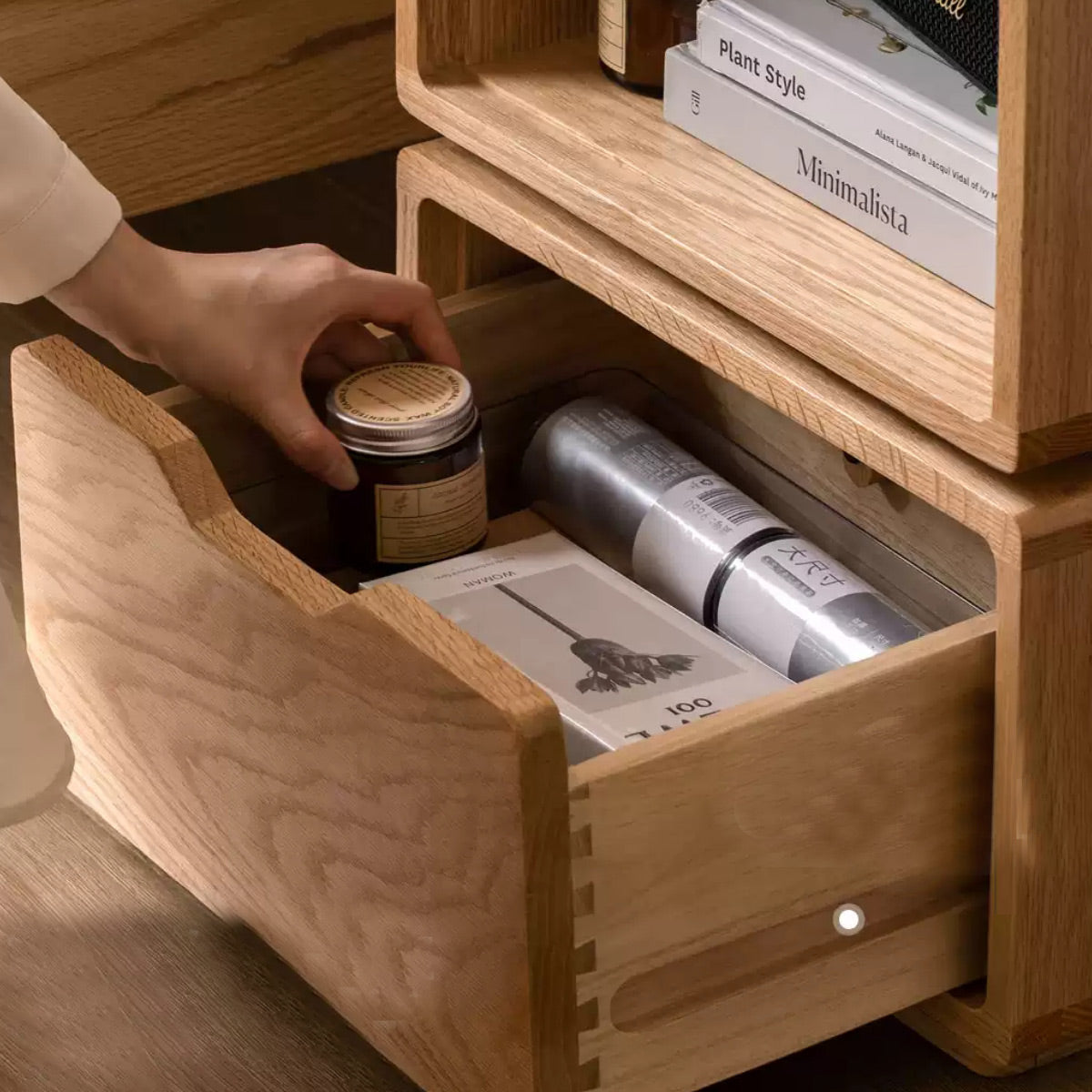 La table de chevet Nora offre un design épuré et minimaliste, fabriquée en bois de haute qualité pour plus de durabilité et de style. Dotée d'une étagère ouverte pour un accès facile à vos essentiels et d'un tiroir spacieux pour un rangement discret, elle allie fonctionnalité et élégance.