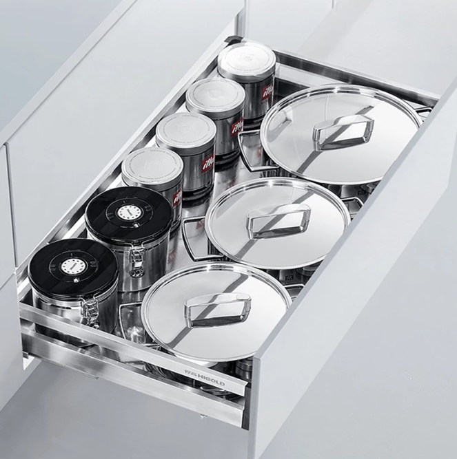 Le panier coulissant Pandora à trois côtés est fabriqué en acier inoxydable durable, offrant une solution robuste et spacieuse pour organiser vos ustensiles de cuisine. Doté d'un mécanisme de tiroir coulissant en douceur, il permet un accès facile aux casseroles, poêles et autres ustensiles de cuisine, ce qui en fait un ajout pratique à tout système d'armoires basses.