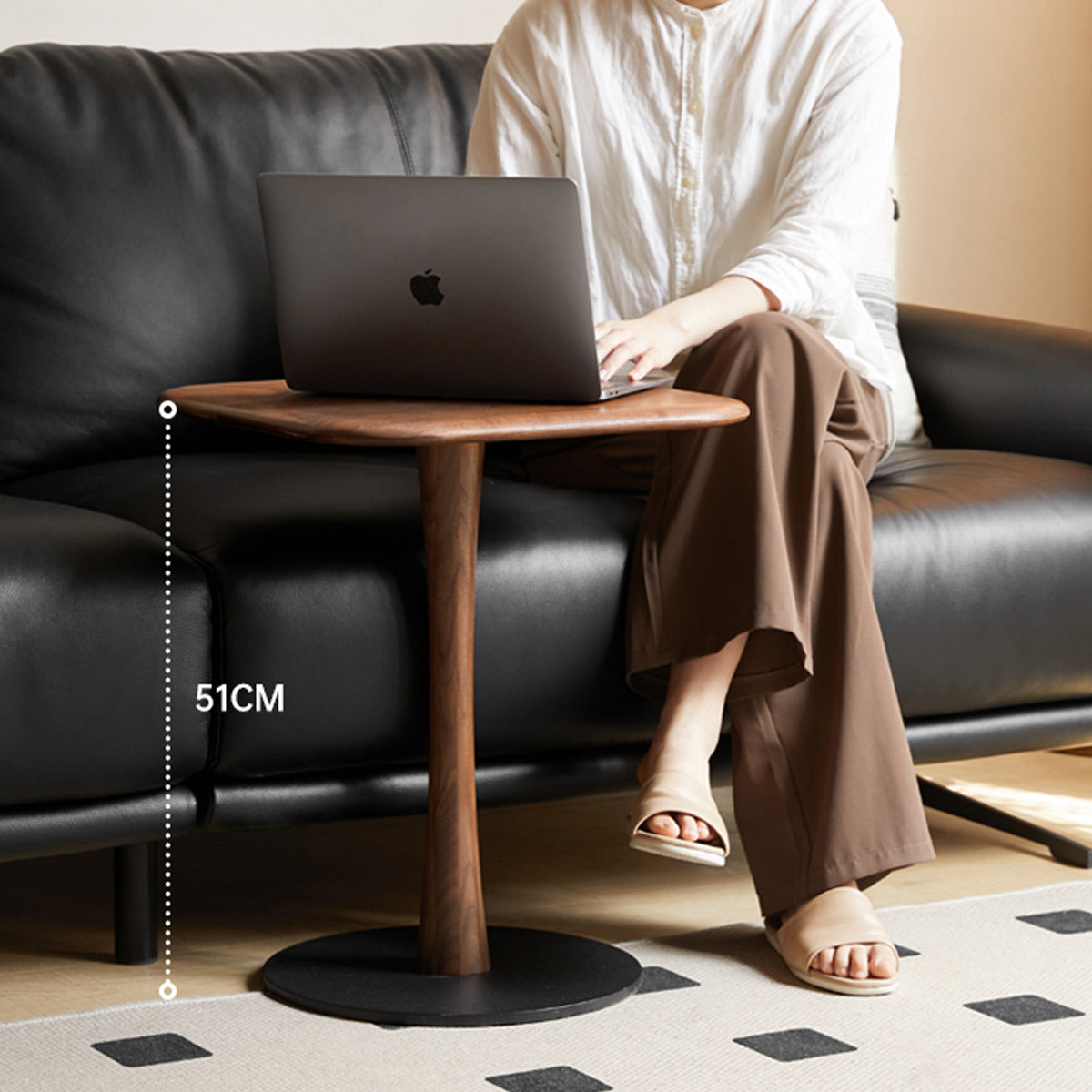 La table d'appoint Quadro présente un design minimaliste avec un plateau carré élégant et des bords arrondis, soutenu par un fin piètement en bois. Ses dimensions compactes la rendent idéale pour les espaces restreints, tandis que son piètement solide assure sa stabilité.