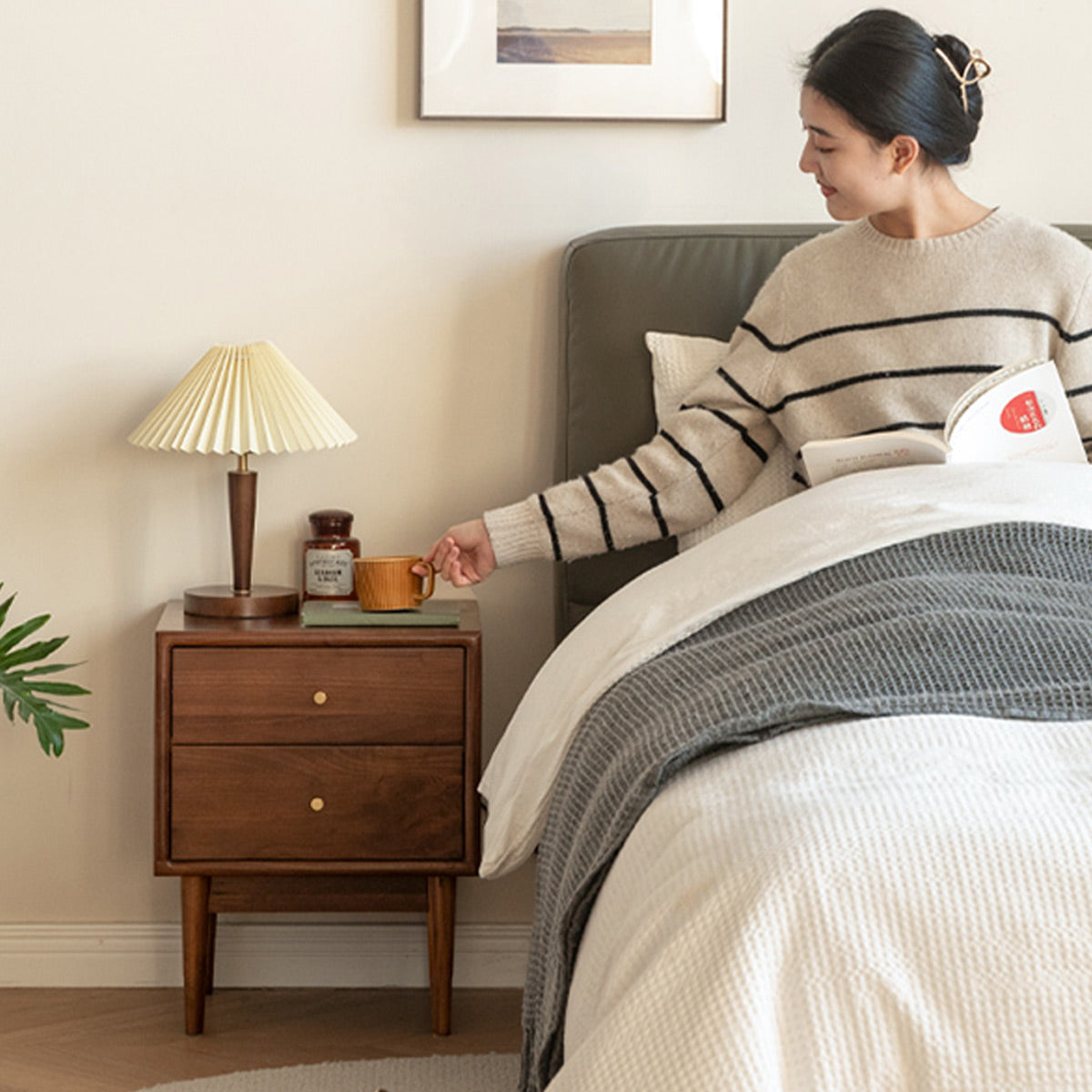 Fabriquée en bois de noyer noir, la finition en bois foncé confère à la table de chevet Ron un extérieur époustouflant et élégant, rehaussant la décoration de la chambre.