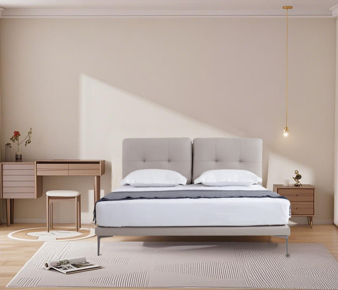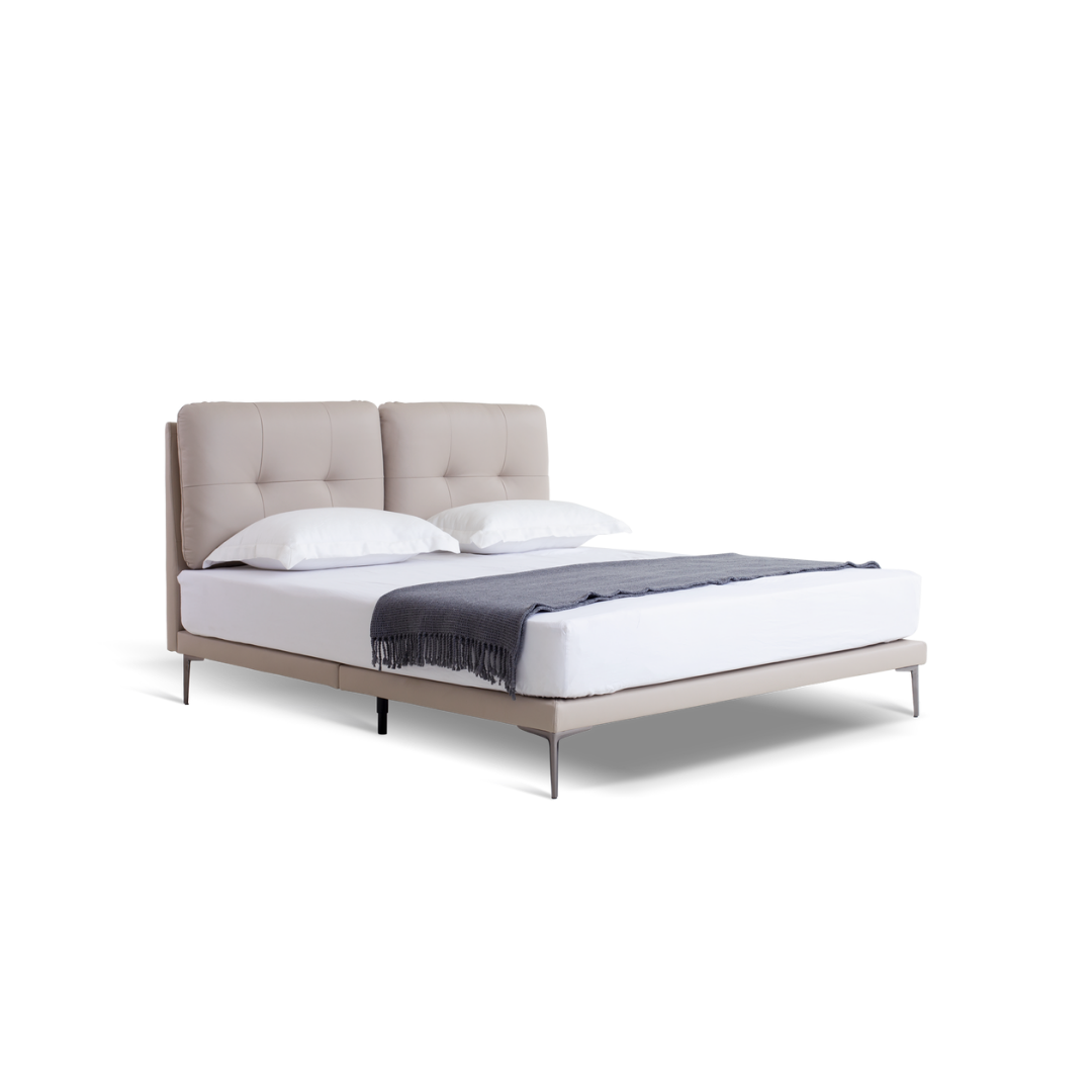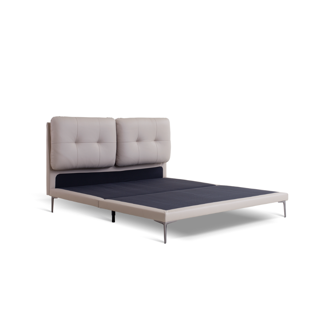 Le cadre de lit Serene redéfinit le luxe de la chambre avec son design doux et capitonné dans un ton beige apaisant. Doté d'une tête de lit capitonnée moelleuse divisée en deux panneaux symétriques, il allie confort et style contemporain. Son sommier discret, soutenu par des pieds métalliques élégants, assure stabilité et esthétique épurée. Idéal pour créer un havre de paix dans n'importe quelle chambre.