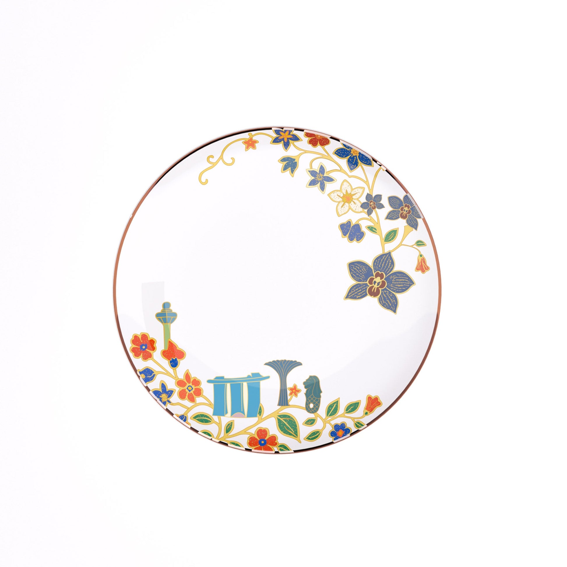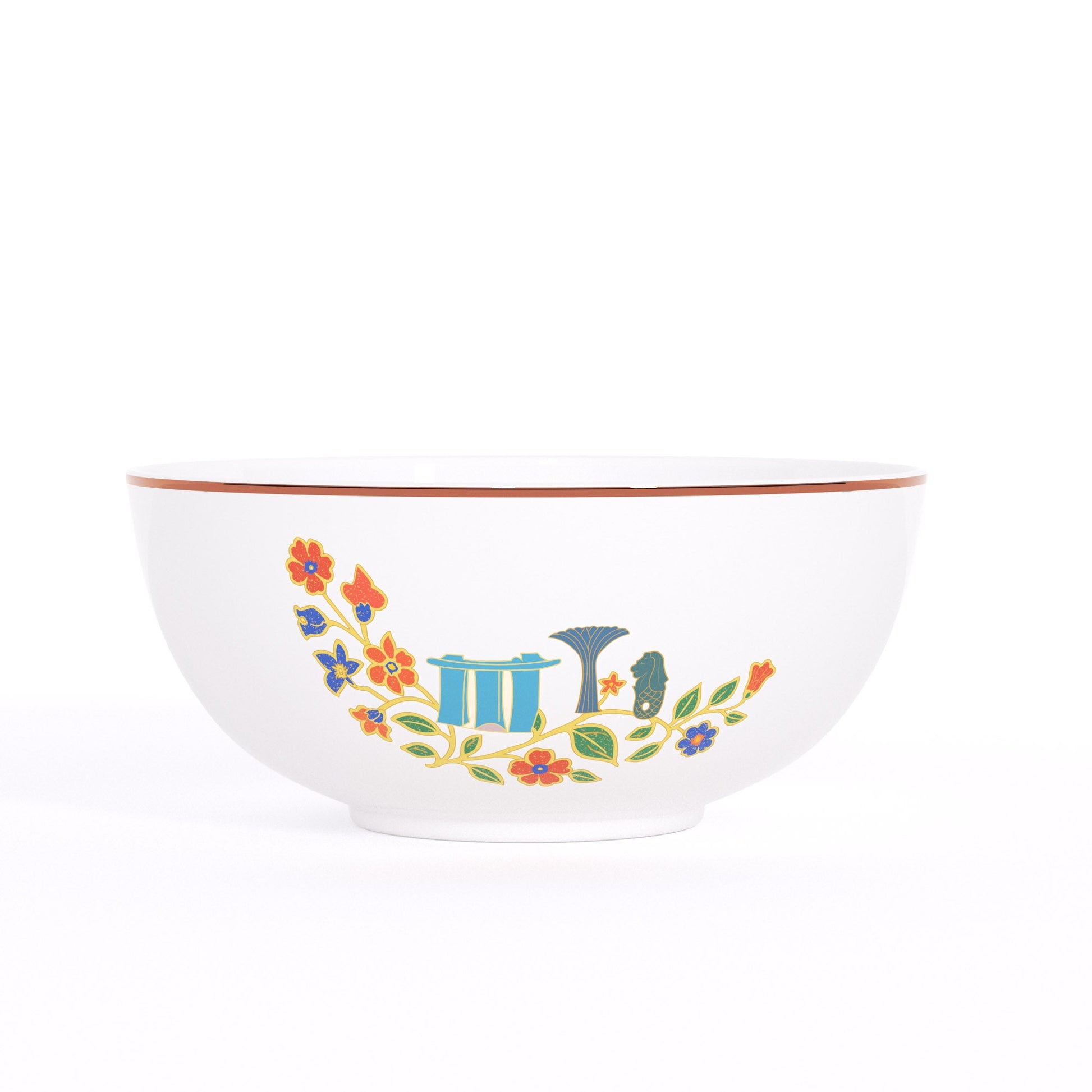 Le service de table SG60 Heritage Bloom rend hommage à la riche culture singapourienne. Conçue pour commémorer six décennies d'unité et de progrès, cette collection de 16 pièces présente d'élégants motifs floraux inspirés du batik, dans une palette vibrante et intemporelle, délicatement imprimés sur de la porcelaine fine .