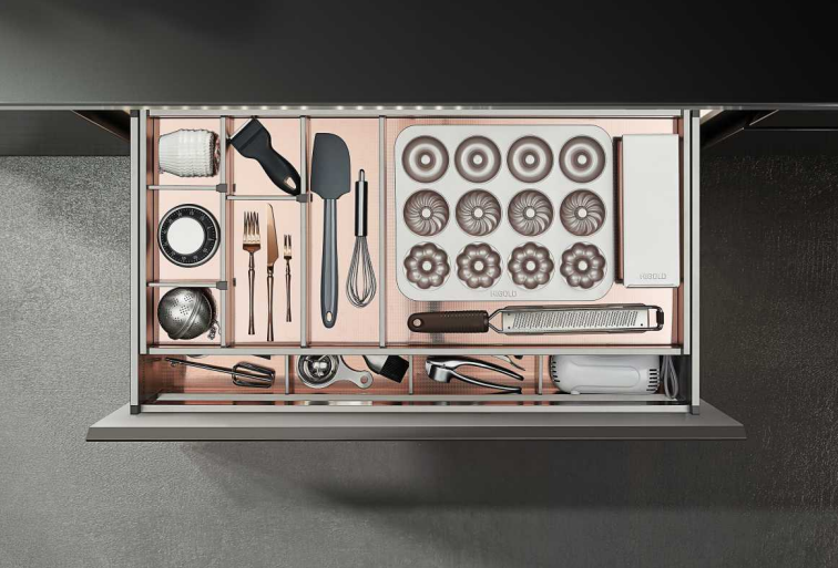 Le tiroir double couche Shearer 4.0 est la solution idéale pour une organisation élégante de votre cuisine, véritable maître d'hôtel attentionné. Fabriqué en aluminium durable, il est doté de compartiments ingénieux permettant de ranger et d'accéder facilement à tous vos ustensiles de cuisine, tout en apportant une touche de sophistication haut de gamme.