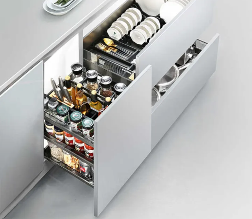 Grâce à sa conception multicouche et compartimentée, ce panier de base permet de ranger soigneusement l'huile de cuisson, les pots de sauce, les produits secs et bien plus encore. Les petits compartiments de la couche supérieure accueillent les petits articles, tandis que les compartiments inférieurs, plus grands, accueillent les objets plus volumineux, pour une visibilité et un accès faciles.