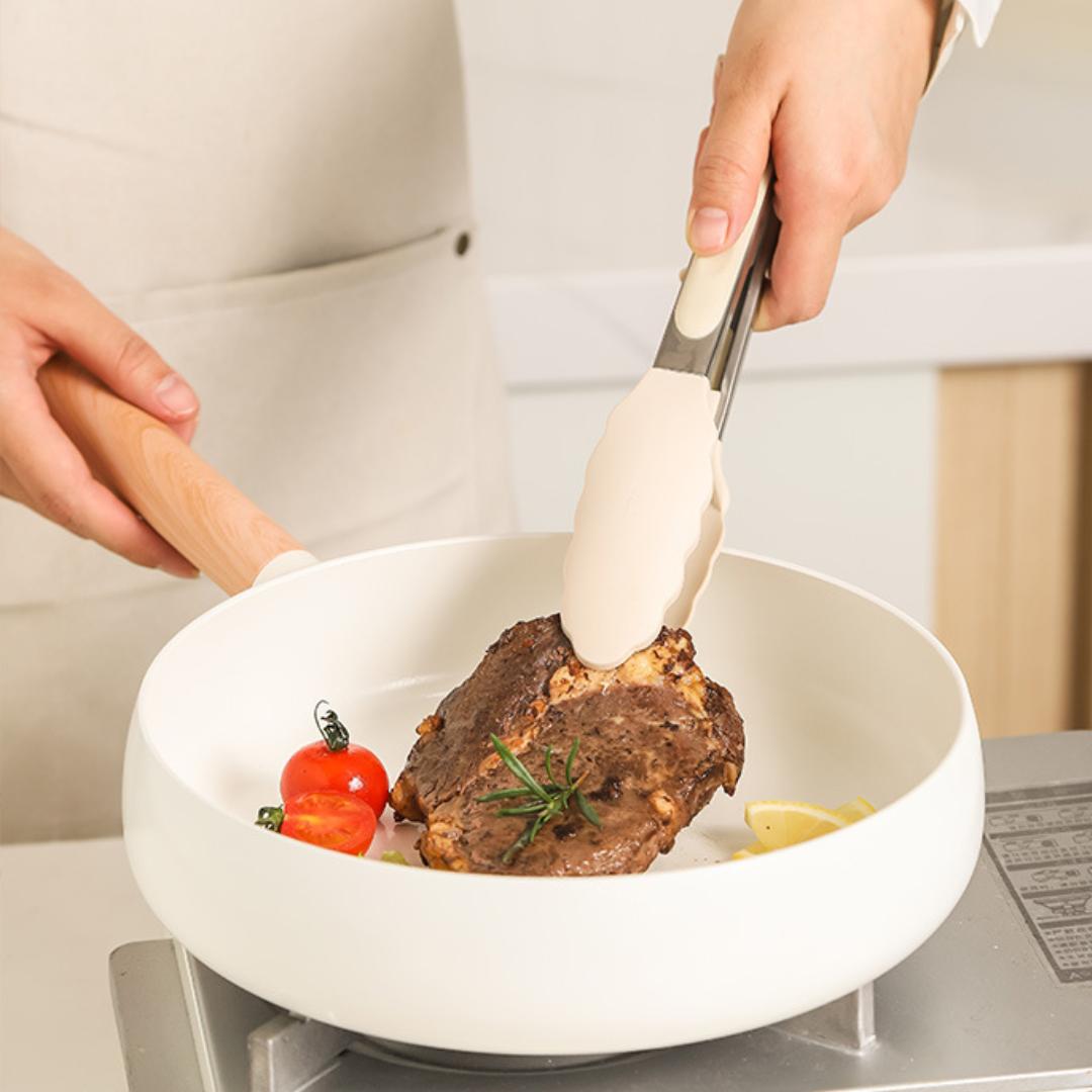 Les pinces en silicone sont parfaites pour retourner, remuer, servir ou dresser les assiettes. Dotées d'embouts en silicone résistants à la chaleur et d'un corps robuste en acier inoxydable, elles sont compatibles avec les ustensiles de cuisson antiadhésifs et suffisamment robustes pour les grillades à haute température. Conçues avec une prise en main confortable et un mécanisme de verrouillage pour un rangement compact, elles sont aussi pratiques qu'élégantes.