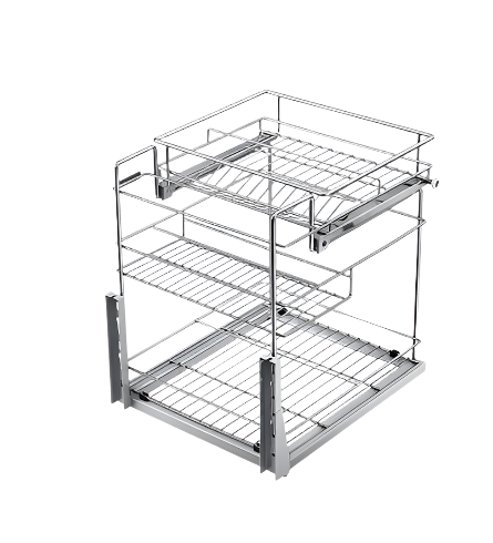 Doté d'une structure pratique à trois niveaux, ce support divise l'espace de manière flexible pour les casseroles, poêles, bols, bouteilles et bocaux. Son rail coulissant fluide permet un retrait et un retrait faciles, pour une organisation simple et efficace de la cuisine.