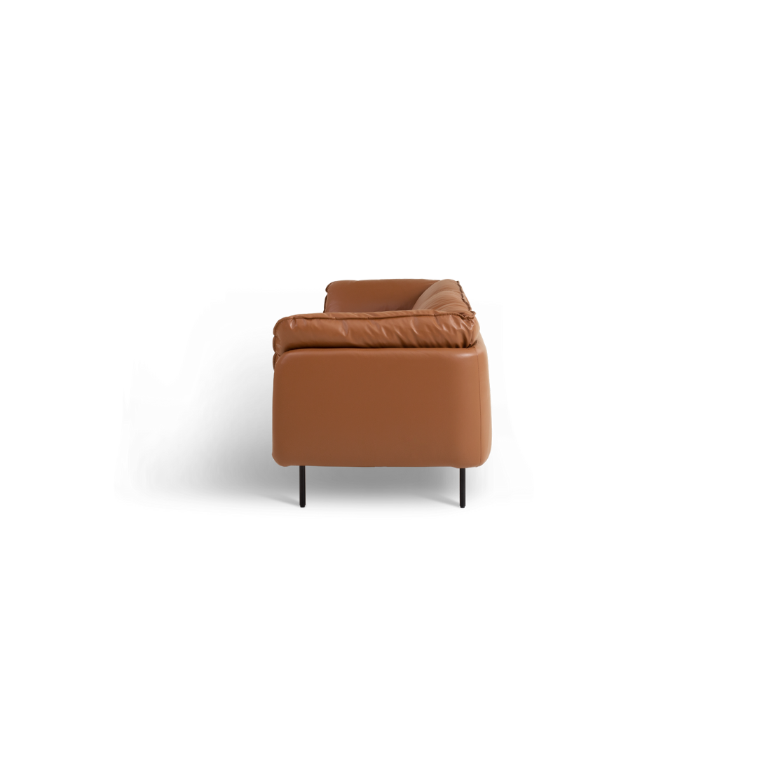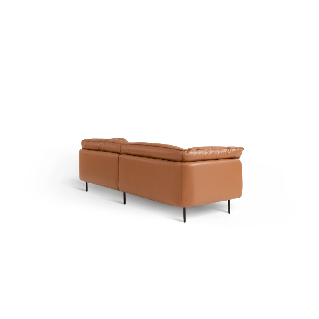 Le canapé Vega respire la sophistication contemporaine avec son élégant revêtement en cuir noir et sa silhouette minimaliste. Doté de coussins moelleux et d'accoudoirs arrondis, il offre un confort exceptionnel tout en conservant une esthétique raffinée. Soutenu par de fins pieds en métal noir, ce canapé est le choix idéal pour les espaces de vie modernes en quête de luxe discret.